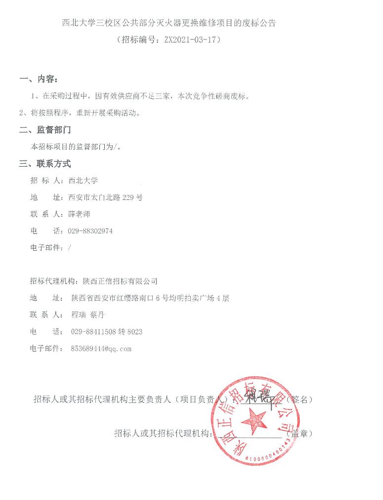 云博app官方在线入口三校区公共部分灭火器更换维修项目的废标公告