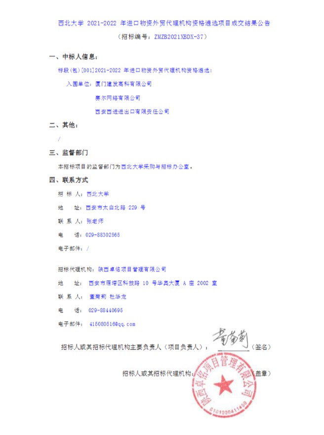 云博app官方在线入口2021-2022年进口物资外贸代理机构资格遴选项目成交结果公告