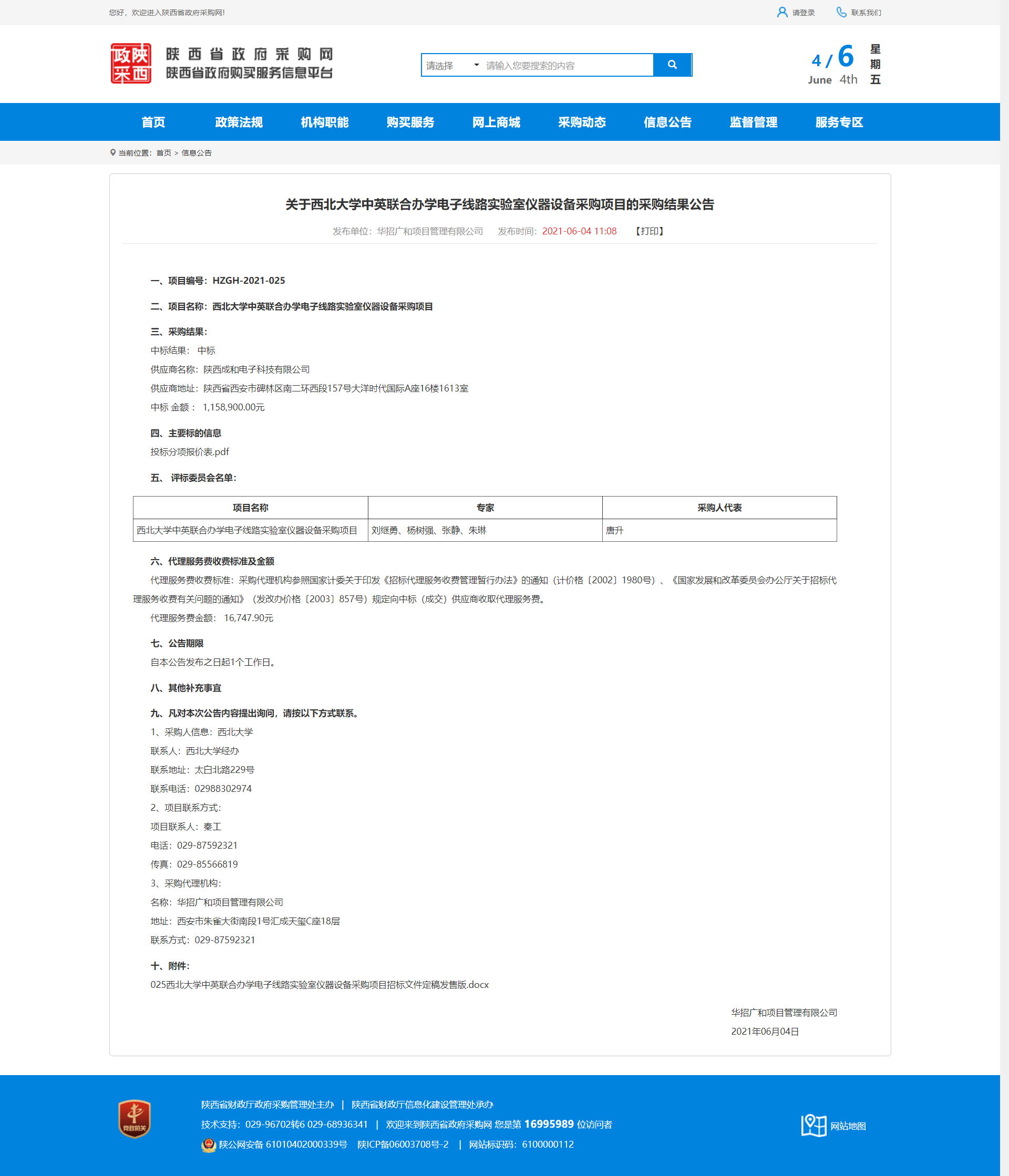 关于云博app官方在线入口中英联合办学电子线路实验室仪器设备采购项目的采购结果公告 作者: 编辑:薛利娟 时间:2021-06-04 原公告地址:http://ccgp-shaanxi.gov.cn/notice/noticeDetail.do?noticeguid=8a85be32791b87da0179d4f9ca5a7372