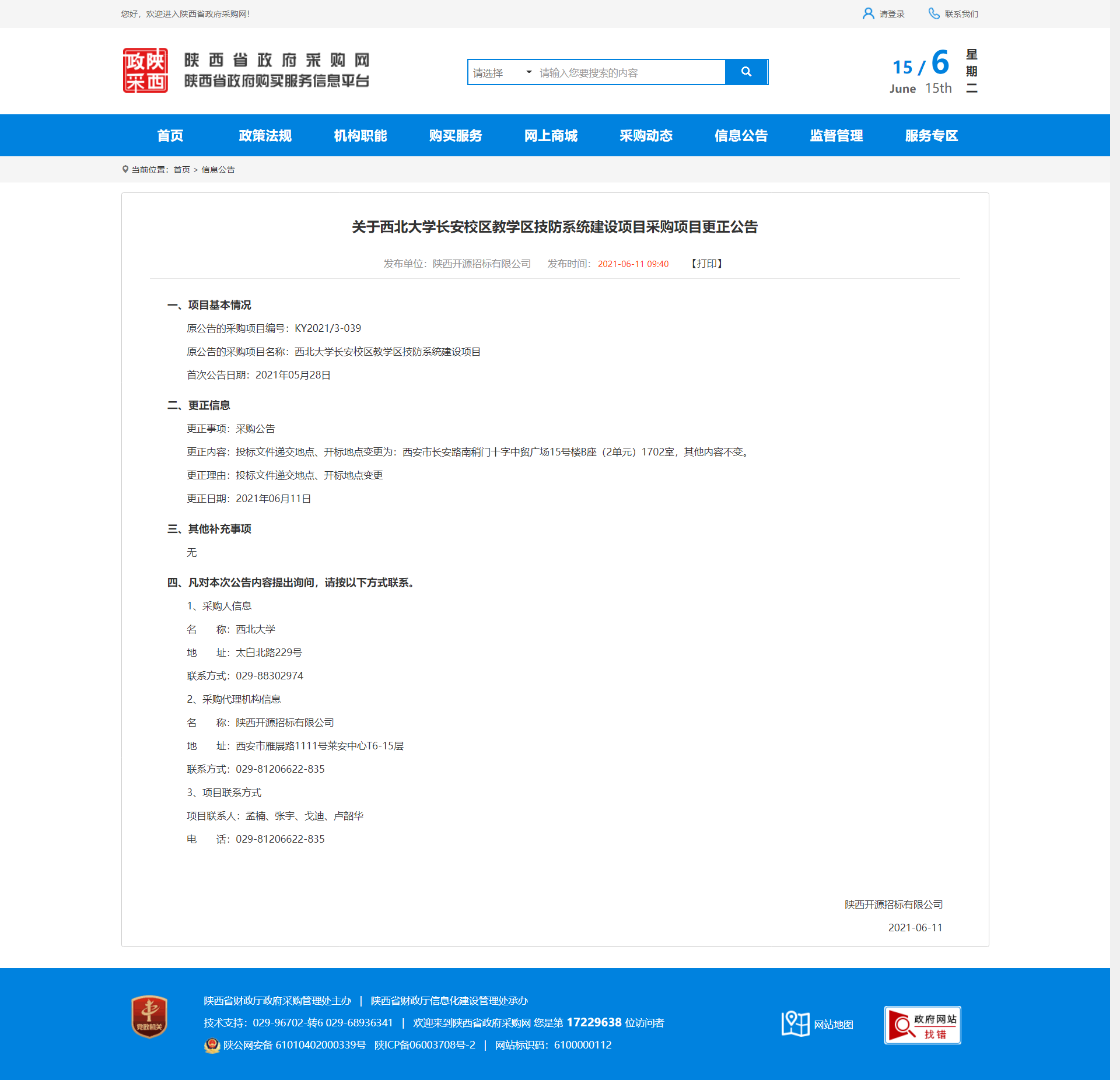 关于云博app官方在线入口长安校区教学区技防系统建设项目采购项目更正公告 作者: 编辑:薛利娟 时间:2021-06-15 原公告地址:http://www.ccgp-shaanxi.gov.cn/notice/noticeDetail.do?noticeguid=8a85be33791baa0f0179f8ab30151d42