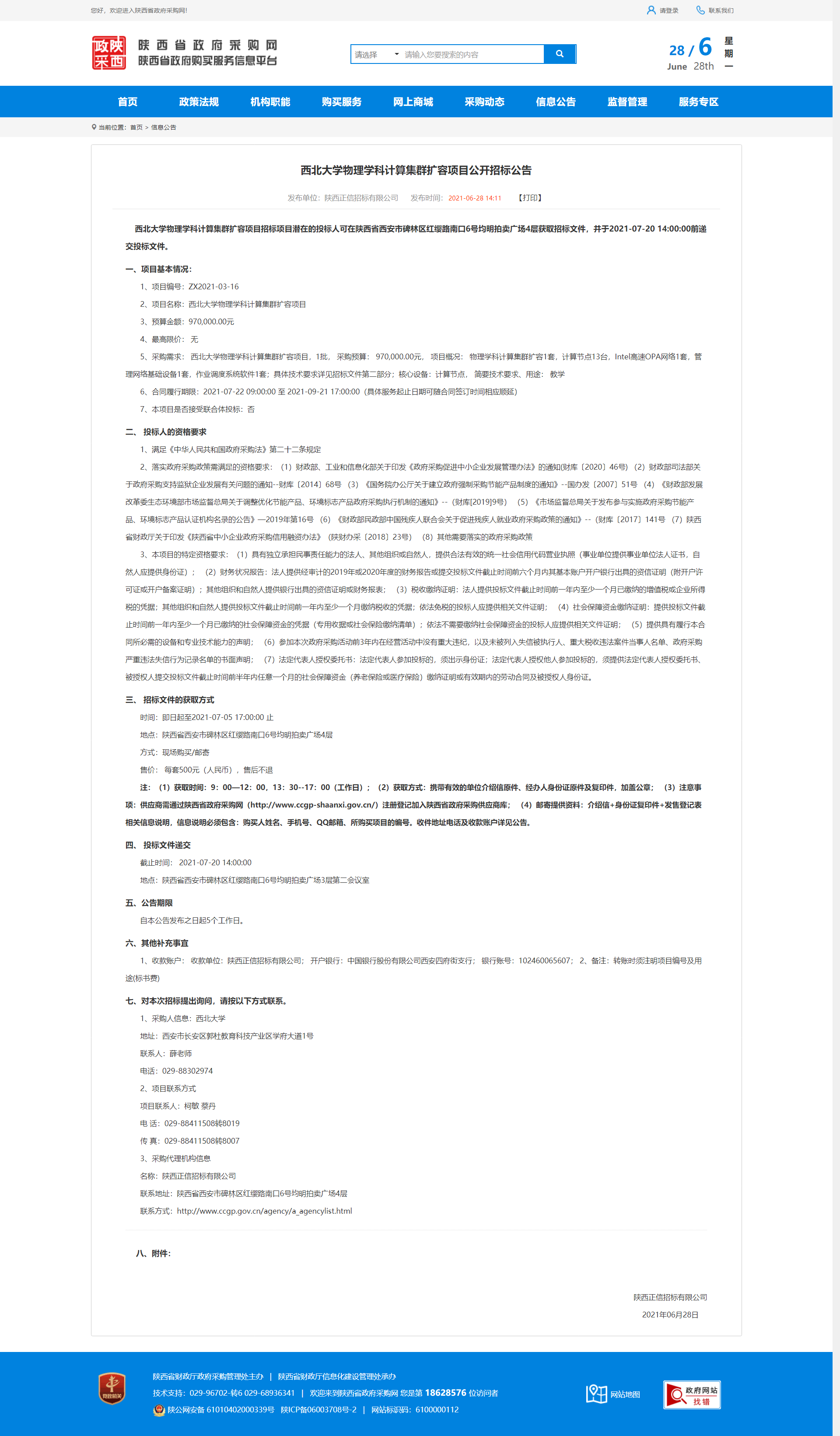 云博app官方在线入口物理学科计算集群扩容项目公开招标公告 作者: 编辑:采购与招标办公室 时间:2021-06-28 原公告地址:http://www.ccgp-shaanxi.gov.cn/notice/noticeDetail.do?noticeguid=8a85be33791baa0f017a50f2f9203176