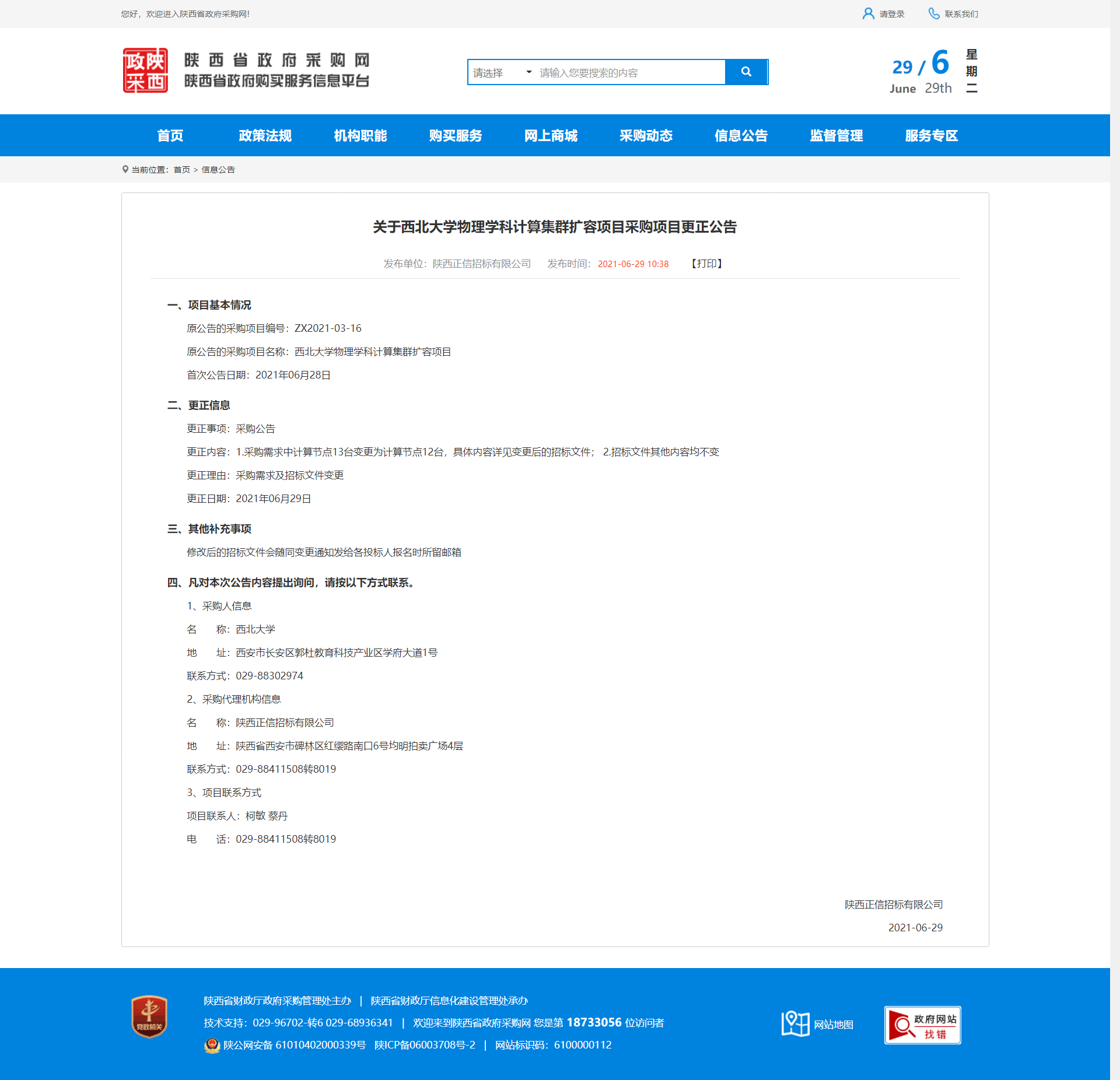 云博app官方在线入口物理学科计算集群扩容项目采购项目更正公告 作者: 编辑:采购与招标办公室 时间:2021-06-29 原公告地址:http://www.ccgp-shaanxi.gov.cn/notice/noticeDetail.do?noticeguid=8a85be33791baa0f017a529f9f2b60b3