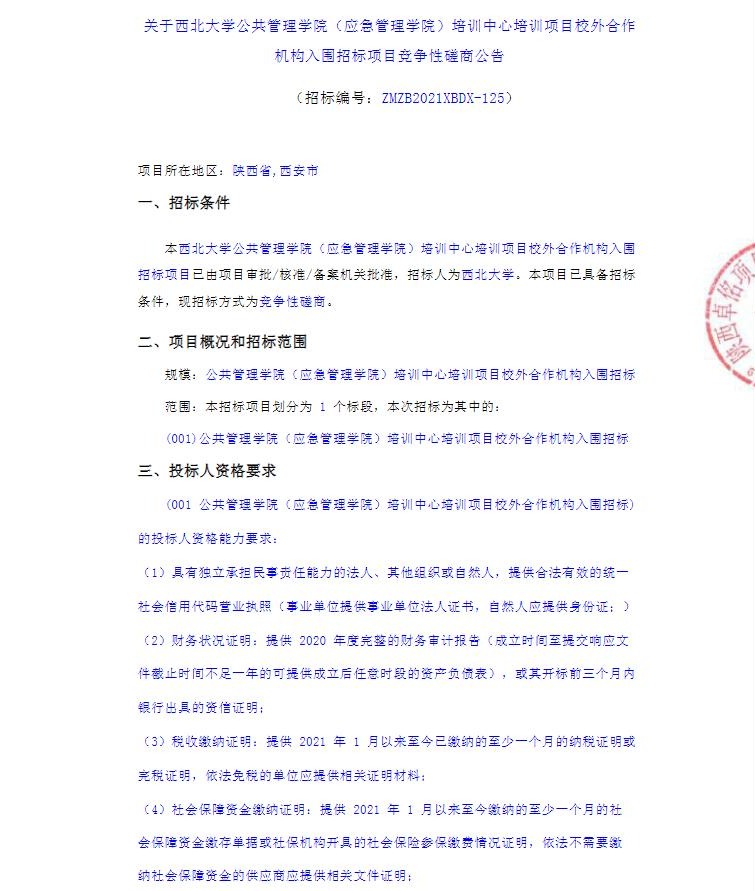 关于云博app官方在线入口公共管理学院(应急管理学院)培训中心培训项目校外合作机构入围招标项目竞争性磋商公告