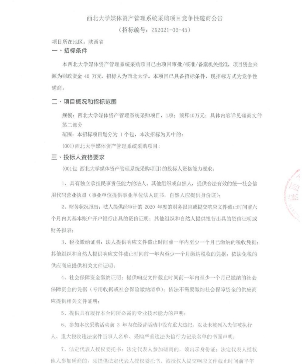 云博app官方在线入口媒体资产管理系统采购项目竞争性磋商公告