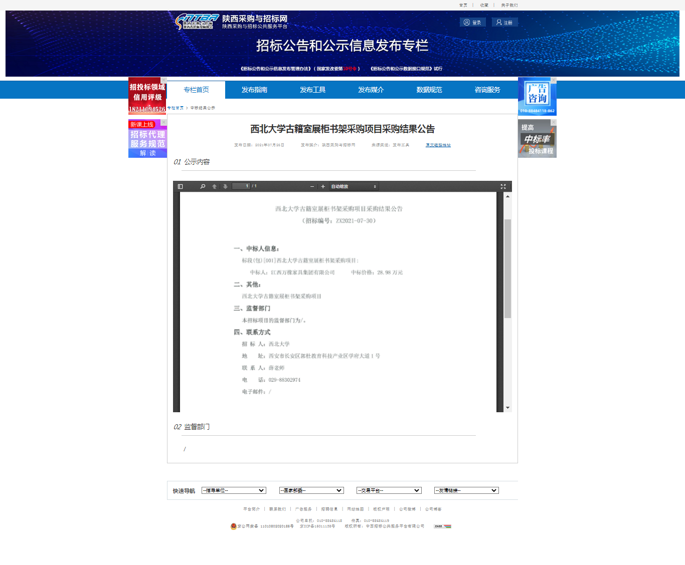 云博app官方在线入口古籍室展柜书架采购项目采购结果公告 作者: 编辑:采购与招标办公实验室 时间:2021-07-26 原公告地址:http://bulletin.sntba.com/resultBulletin/2021-07-26/323299.html