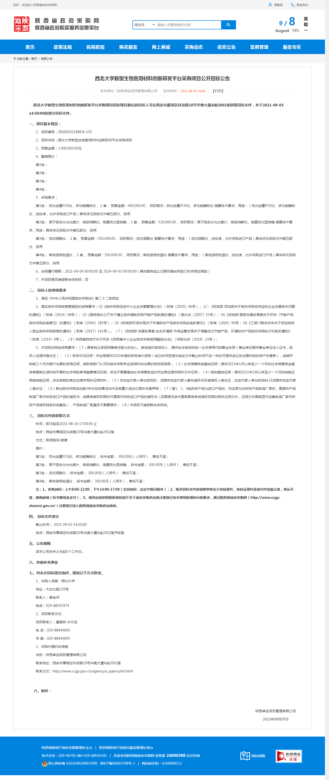 云博app官方在线入口新型生物医用材料创新研发平台采购项目公开招标公告 作者: 编辑:采购与招标办公室 时间:2021-08-09 原公告地址:http://www.ccgp-shaanxi.gov.cn/notice/noticeDetail.do?noticeguid=8a85be347b04610d017b2980fd8a15b4