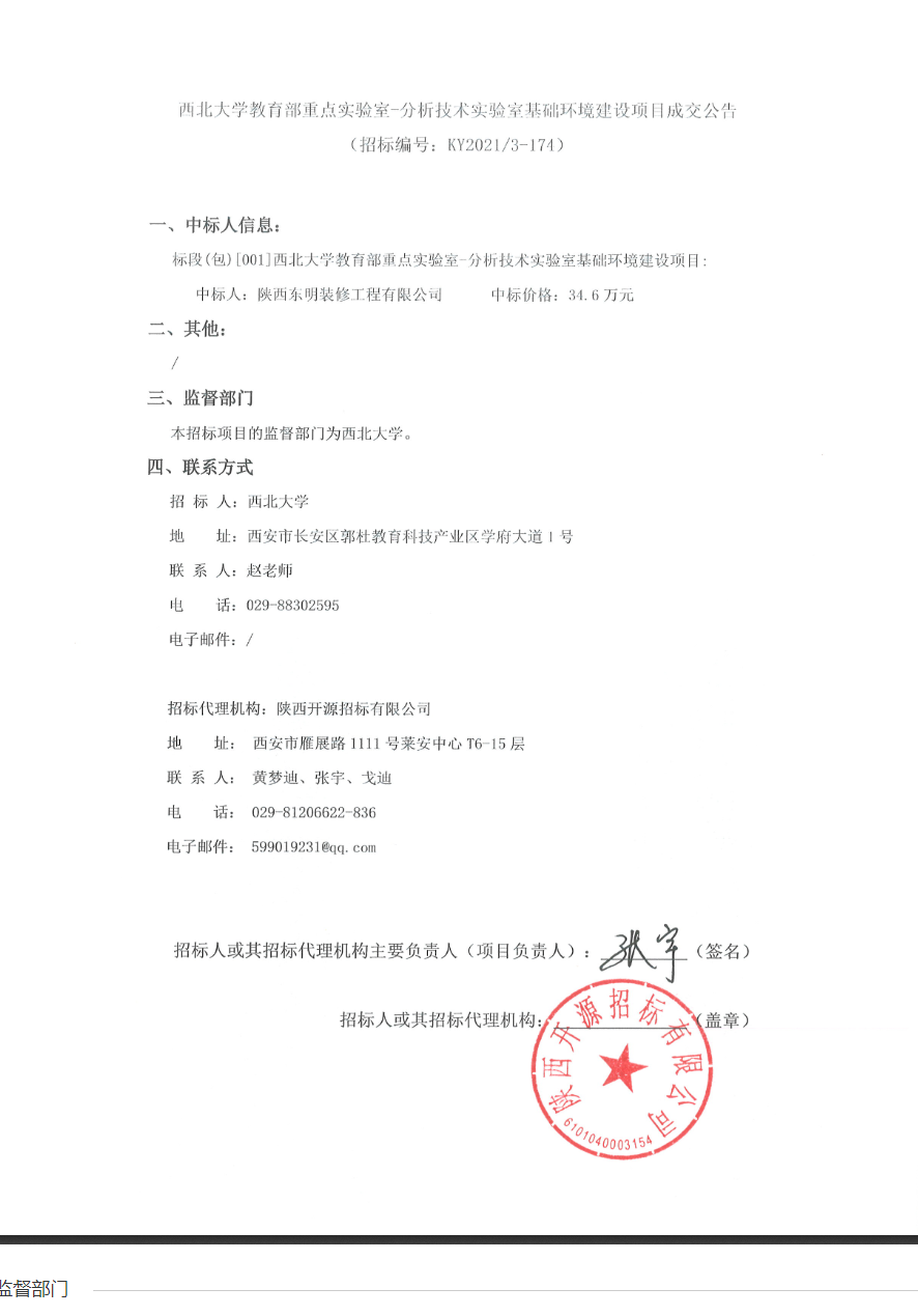 云博app官方在线入口教育部重点实验室-分析技术实验室基础环境建设项目成交公告