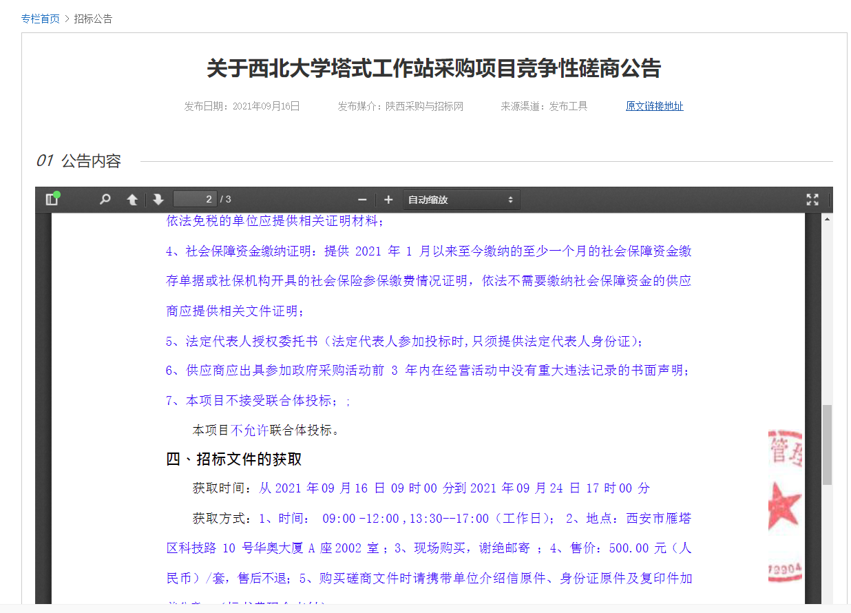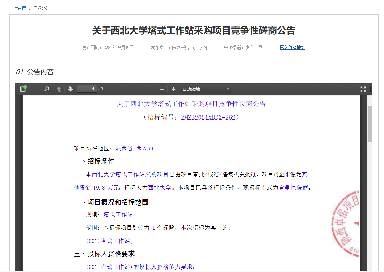 关于云博app官方在线入口塔式工作站采购项目竞争性磋商公告 作者: 编辑:采购与招标办公室 时间:2021-09-17 原公告地址:http://bulletin.sntba.com/biddingBulletin/2021-09-16/343853.html