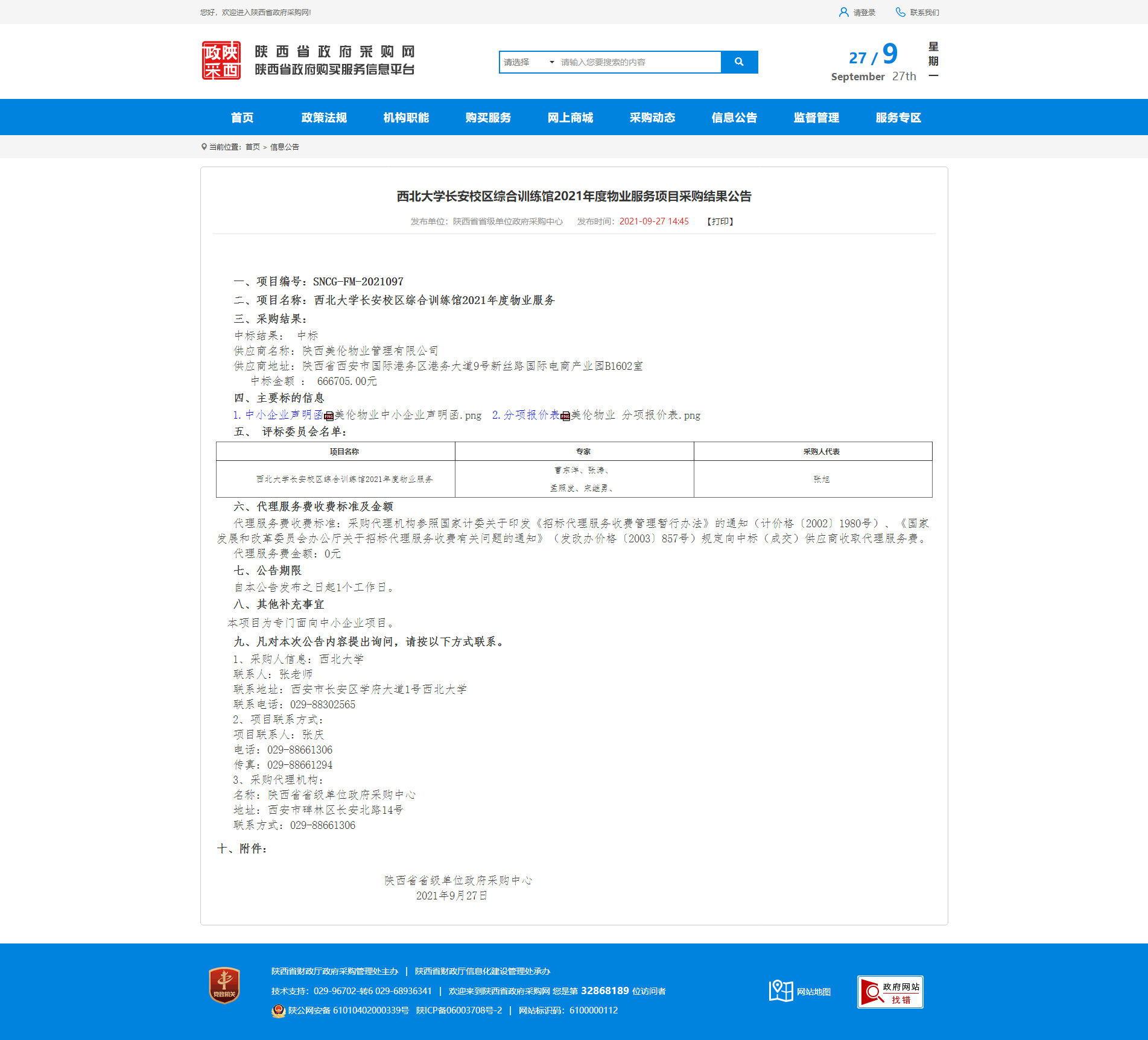 关于云博app官方在线入口长安校区综合训练馆2021年度物业服务项目采购结果公告