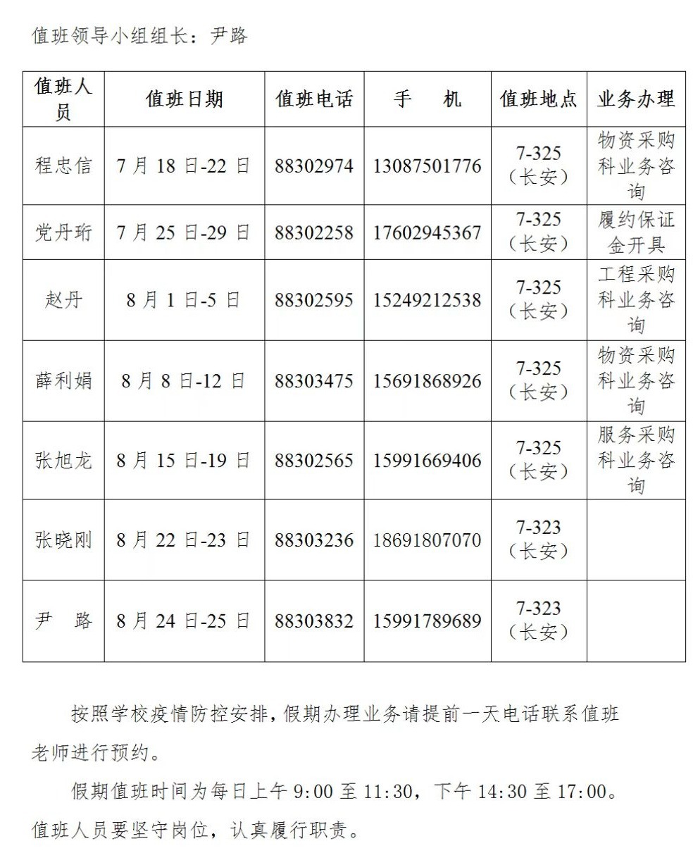 采购与招标办公室2022年暑假值班及履约保证金收据开退时间安排