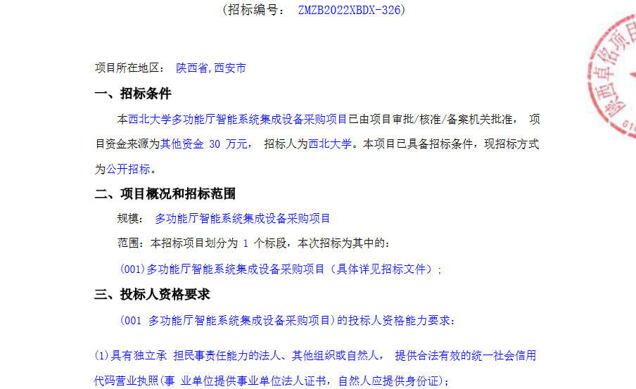 云博app官方在线入口多功能厅智能系统集成设备采购项目公开招标公告 作者: 编辑:采购与招标办公室 时间:2023-02-28 原公告链接:http://bulletin.sntba.com/biddingBulletin/2023-02-28/531633.html