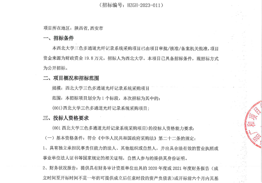 云博app官方在线入口三色多通道光纤记录系统采购项目招标公告 作者: 编辑:采购与招标办公室 时间:2023-03-22 原公告链接:http://bulletin.sntba.com/biddingBulletin/2023-03-21/538285.html