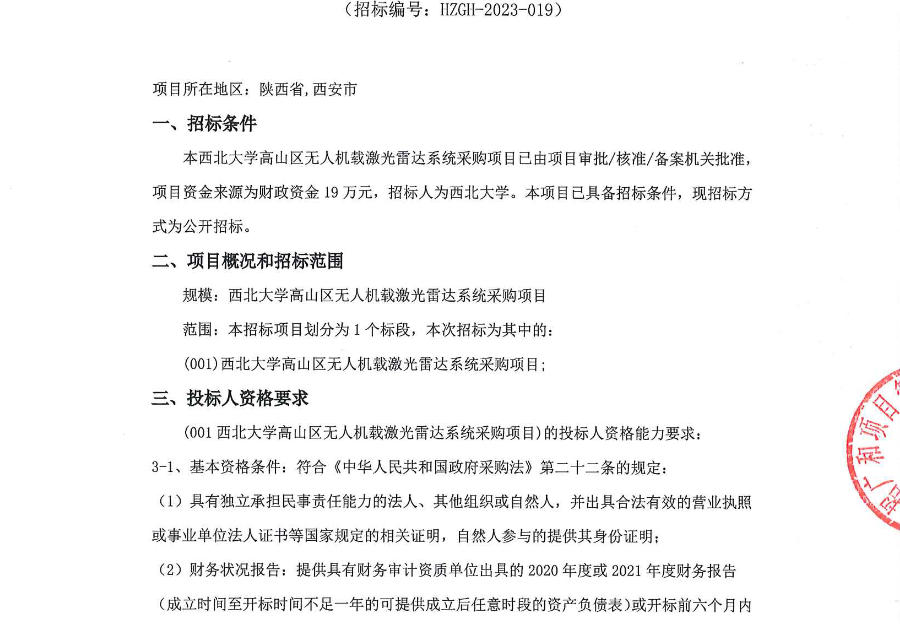 云博app官方在线入口高山区无人机载激光雷达系统采购项目招标公告 作者: 编辑:采购与招标办公室 时间:2023-06-14 原公告链接:http://bulletin.sntba.com/biddingBulletin/2023-06-14/572031.html