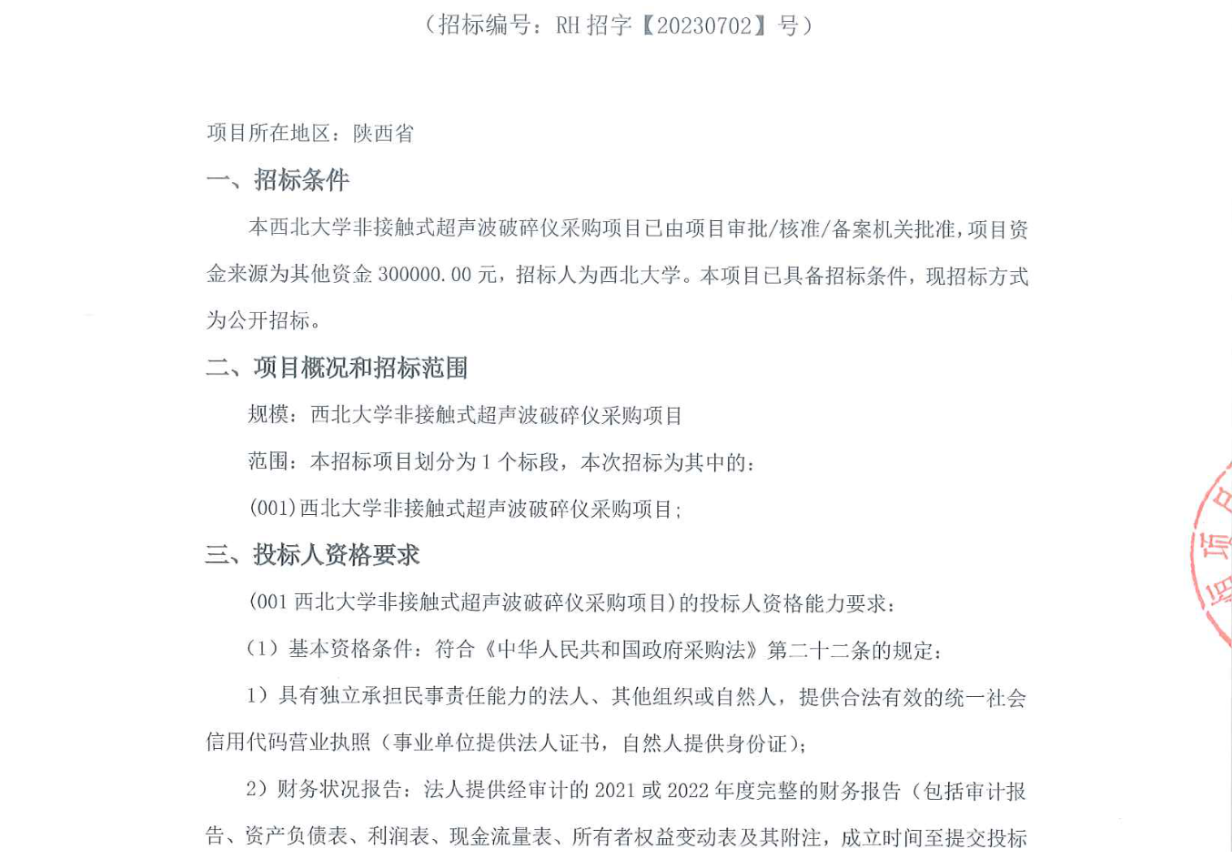 云博app官方在线入口非接触式超声波破碎仪采购项目招标公告 作者: 编辑:薛利娟 时间:2023-08-06 原公告链接:http://bulletin.sntba.com/biddingBulletin/2023-08-04/603235.html