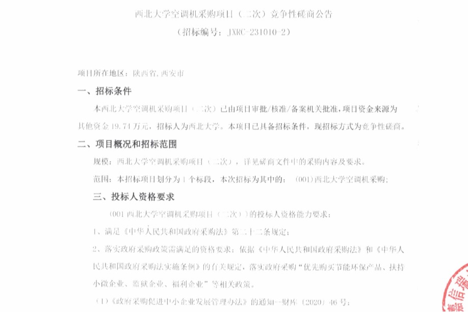 云博app官方在线入口空调机采购项目(二次)竞争性磋商公告