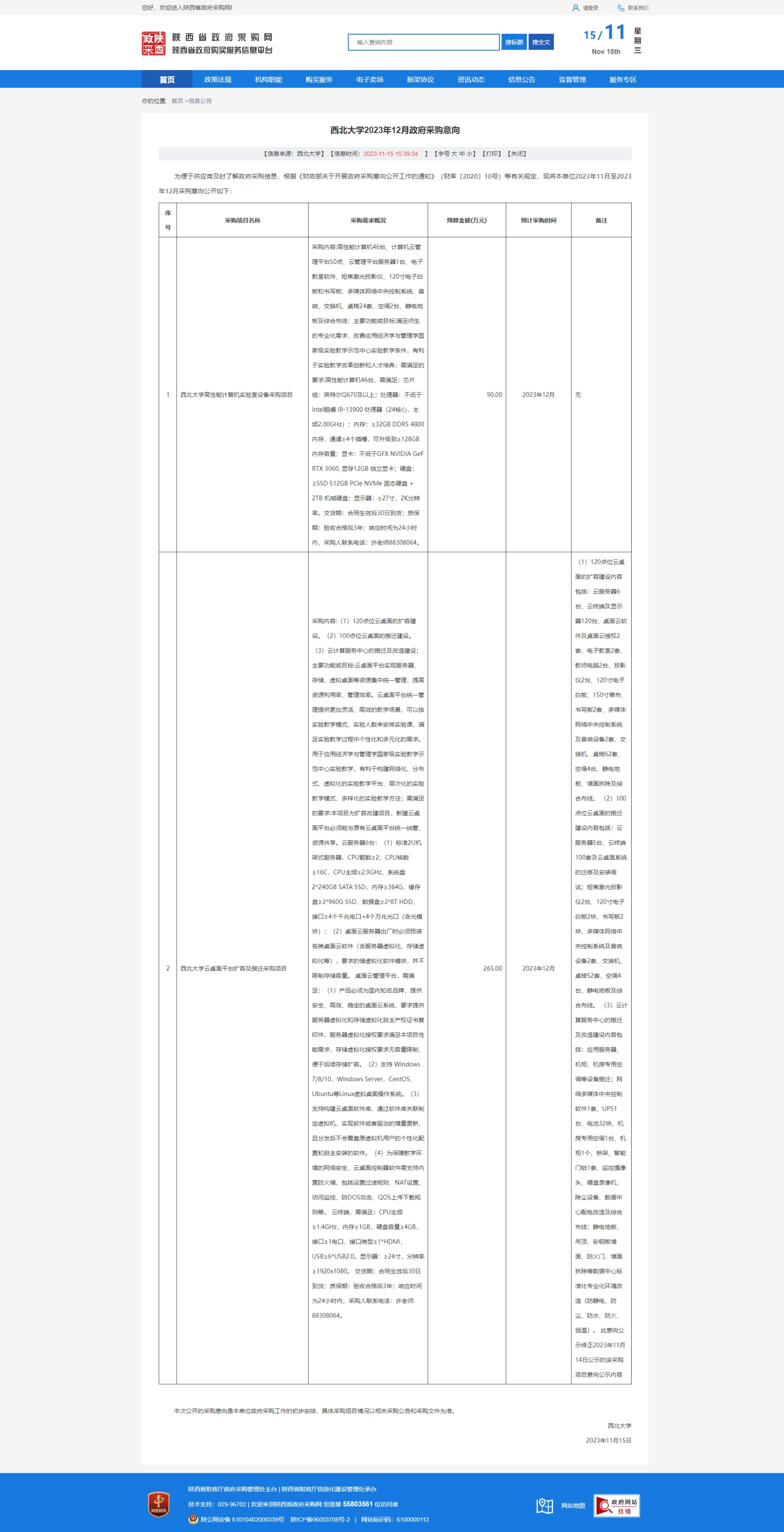 云博app官方在线入口2023年12月政府采购意向 作者: 编辑:采购与招标办公室 时间:2023-11-14 原公告链接:http://www.ccgp-shaanxi.gov.cn/freecms/site/shaanxi/ggxx/info/2023/8a69c2728bccc23e018bd1b3df996cd5.html?noticeType=59¬iceId=63f8348a-838b-11ee-9a8e-08c0eb20c666