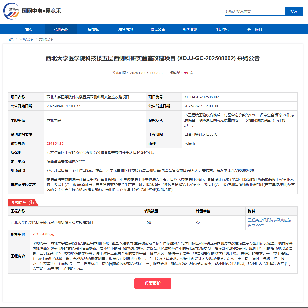 云博app官方在线入口医学院科技楼五层西侧科研实验室改建项目 (XDJJ-GC-202508002) 采购公告 作者: 编辑:党丹珩 时间:2025-08-08 公告地址:https://www.ejingcai.com.cn/site/bidding/detail/19914