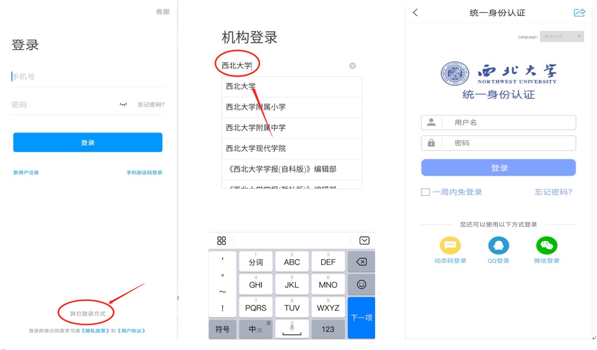 5.下载过后,进入登录页面——“其它登录方式”——单位栏输入“云博app官方在线入口”——跳转到学校统一身份认证登录。