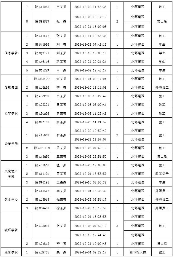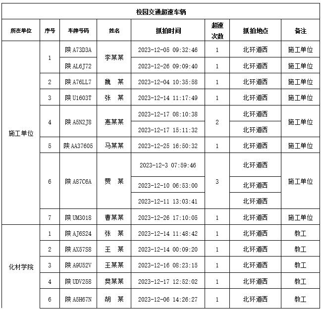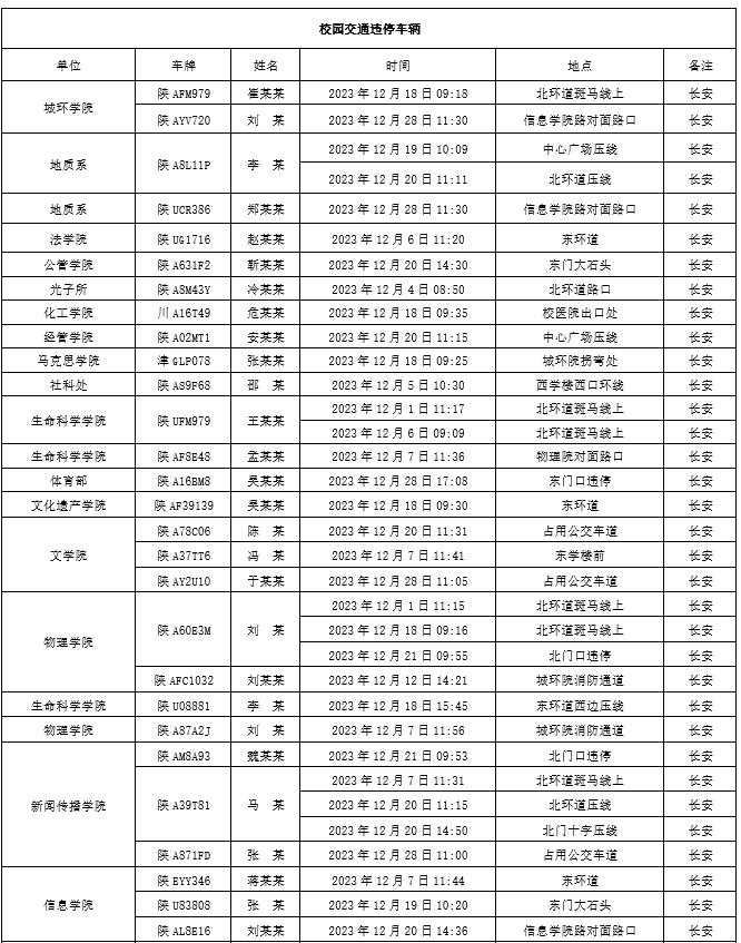 为加强校内道路交通安全管理,规范校内交通秩序,根据《云博app官方在线入口校园道路交通管理办法》有关要求,现将2023年12月校园交通违章车辆予以曝光,所在单位负责对本单位违章师生员工进行交通安全教育和日常管理。