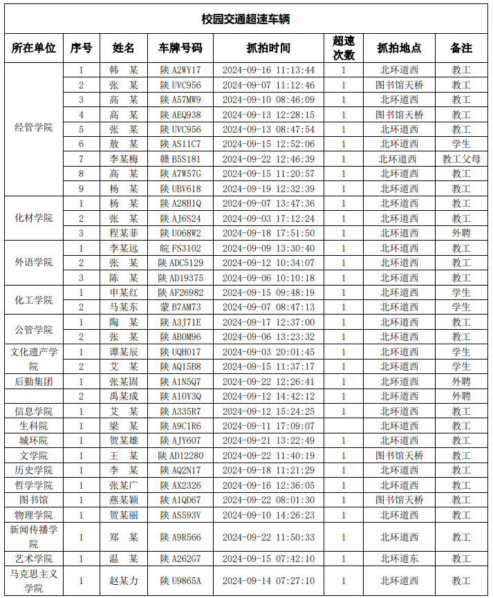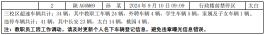 为一步加强校园交通管理,保障校园交通安全有序,维护学校正常的教学、科研和生活秩序以及师生员工的人身财产安全,根据《云博app官方在线入口校园交通安全管理规定》有关要求, 现将2024年9月校园交通违章车辆予以曝光,具体情况如下表。