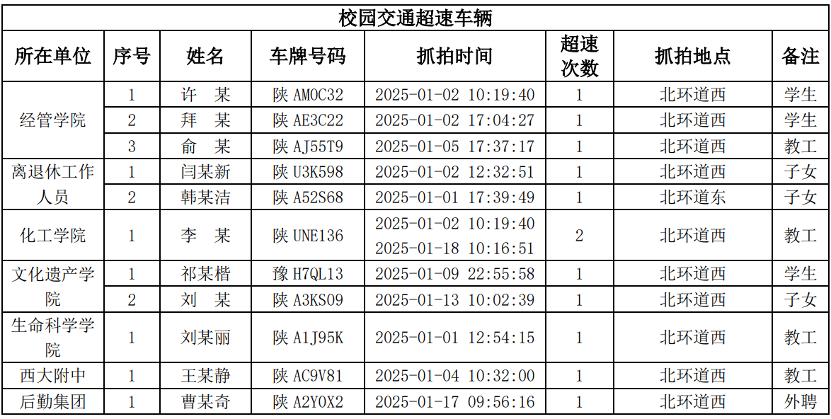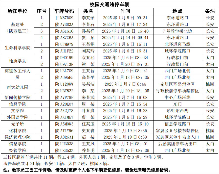 为进一步加强校园交通管理,保障校园交通安全有序,维护学校正常的教学、科研和生活秩序,切实保护师生员工的人身财产安全,根据《云博app官方在线入口校园交通安全管理规定》的相关要求,现将2025年1月校园交通违章车辆予以曝光,具体要求与违章信息如下。
