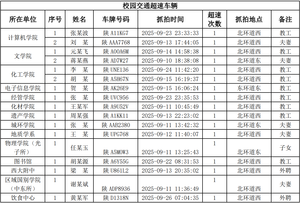 为进一步加强校园交通管理,保障校园交通安全有序,维护学校正常的教学、科研和生活秩序,切实保护师生员工的人身财产安全,根据《云博app官方在线入口校园交通安全管理规定》的相关要求,现将2025年9月校园交通违章车辆予以曝光,具体要求与违章信息如下: