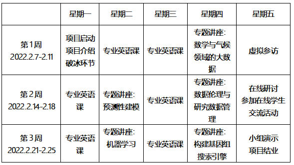 注:以上为项目的参考日程,最终日程需以学校实际安排为准。