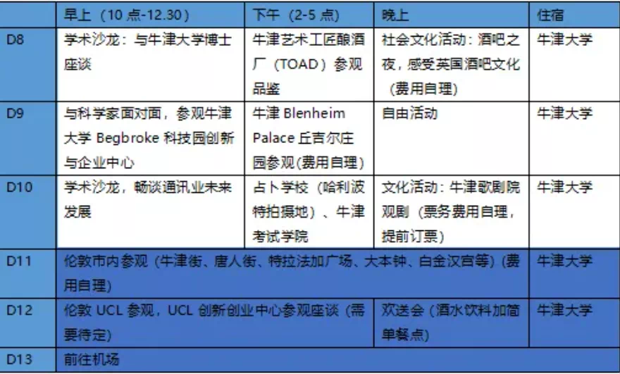 4.课程:学院内英语课程(牛津学院教室师资),专业讲座以及相关企业参观。