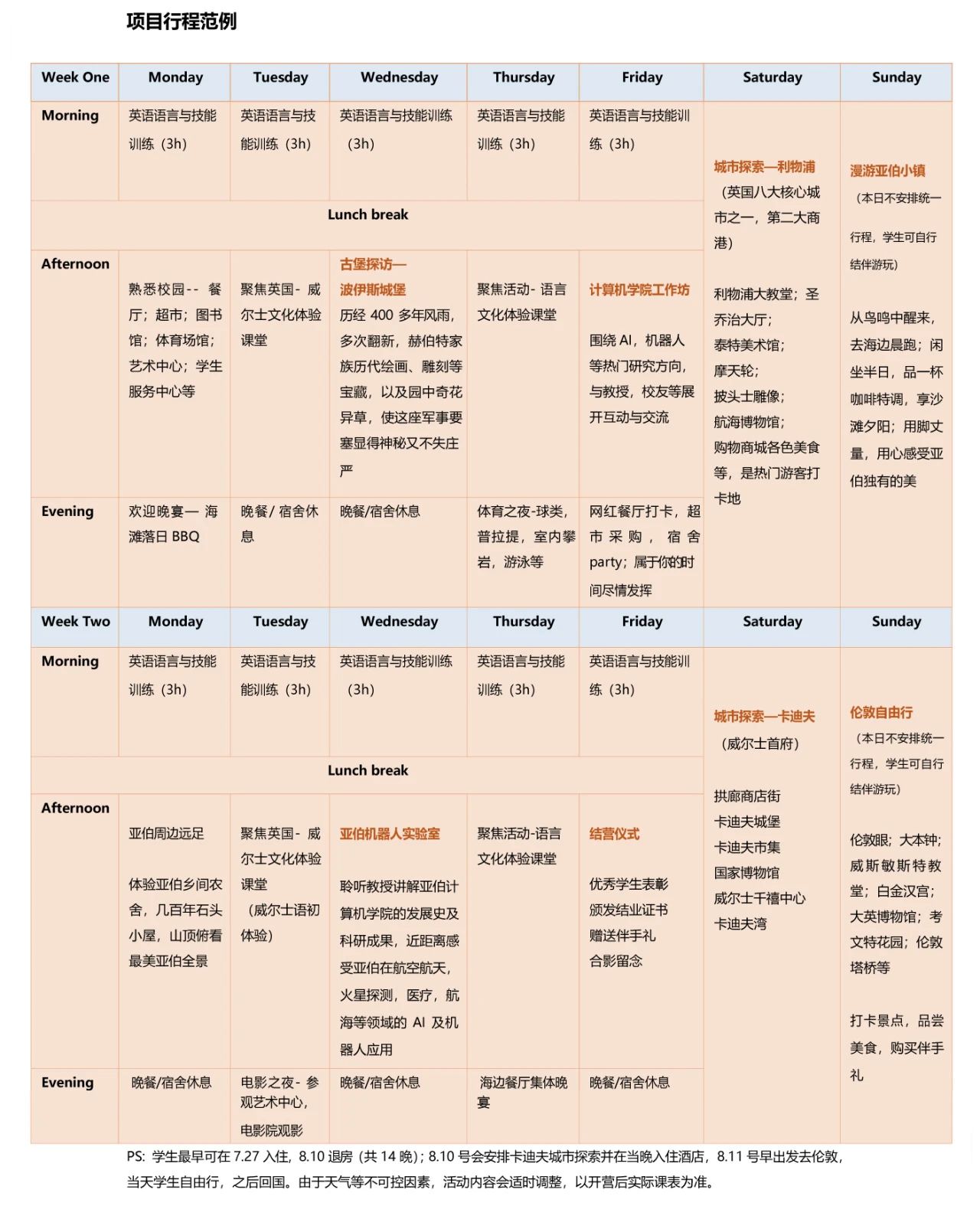 ● 项目行程范例