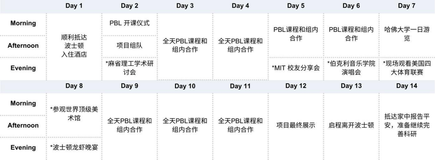 注:1.所有标注星号*的活动属于非必选的专项活动方案,其费用不包含在项目费用中,详情可咨询项目方;