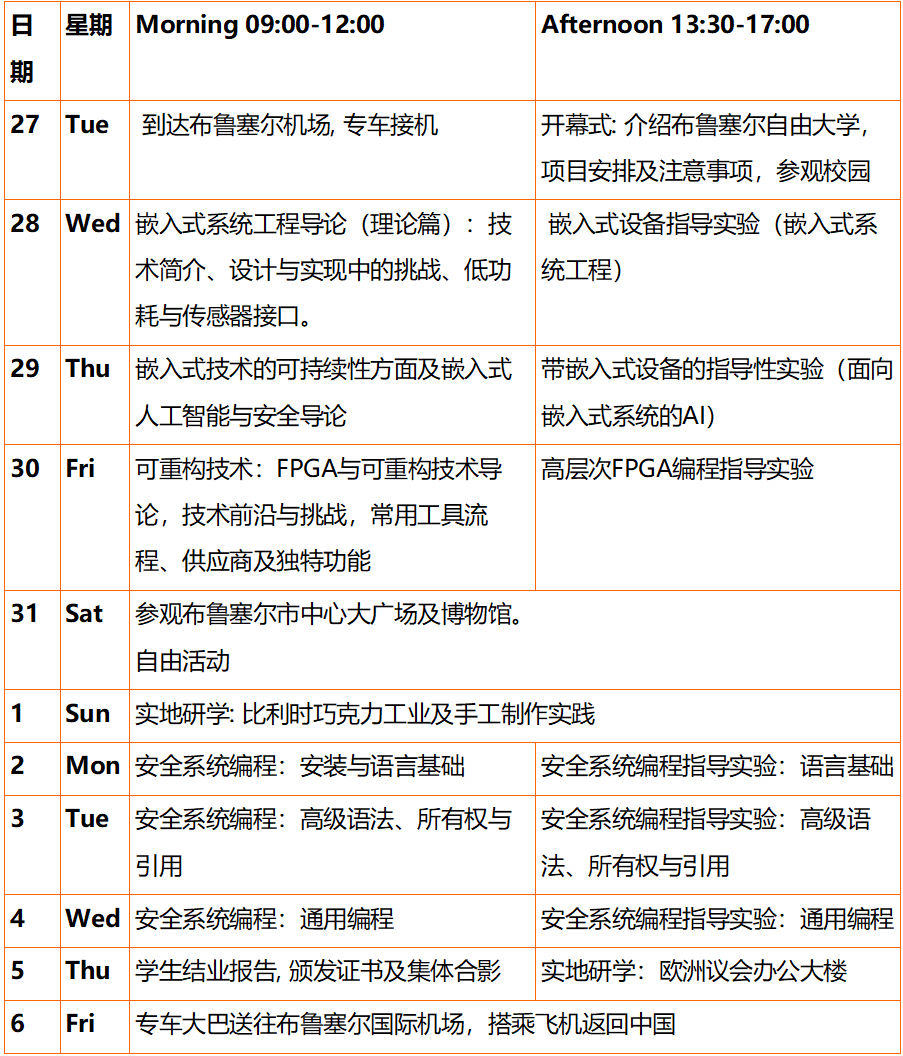 · 授课语言:英文 (由VUB工程学院教授任教)