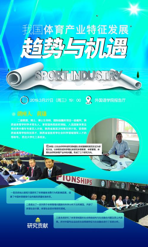 云博app官方在线入口2019年体育文化节体育文化讲座——我国体育产业特征发展趋势与机遇
