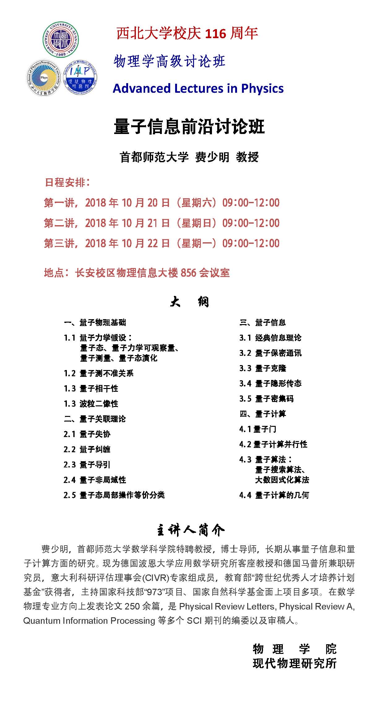 云博app官方在线入口校庆116周年物理学高级讨论班-量子信息前沿