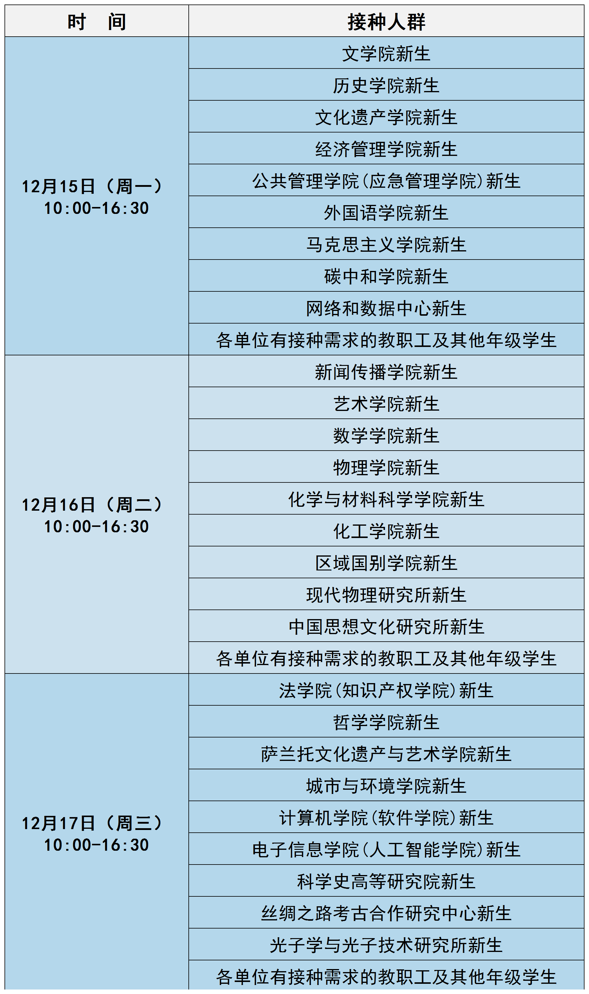 1.长安校区2025级新生(因个人原因未及时完成第一针接种者此次也可预约接种第一针)
