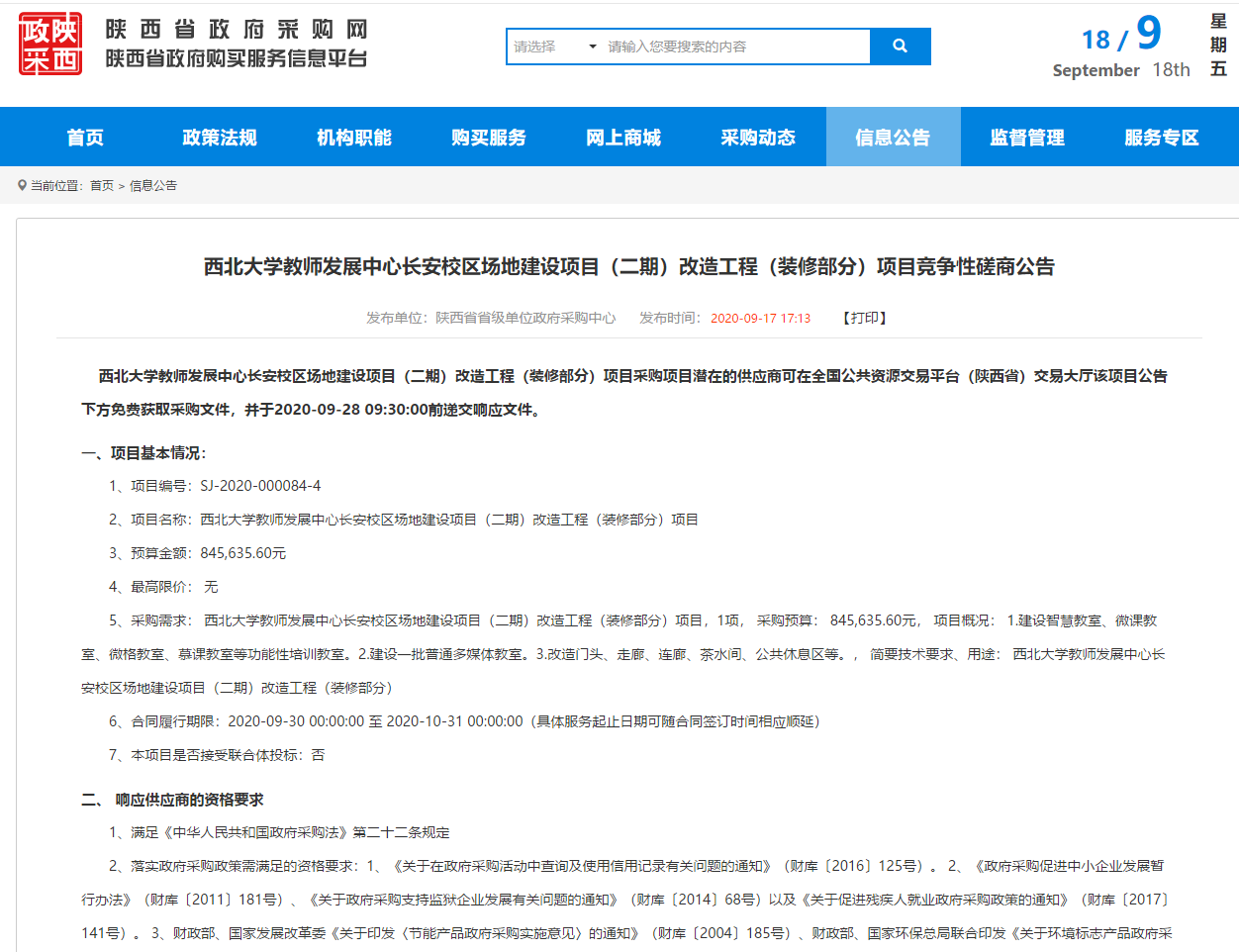 云博app官方在线入口教师发展中心长安校区场地建设项目(二期)改造工程(装修部分)项目竞争性磋商公告 作者: 编辑:季兴帅 时间:2020-09-18 公告原文链接:http://www.ccgp-shaanxi.gov.cn/notice/noticeDetail.do?noticeguid=8a85be327394d739017499e718111004