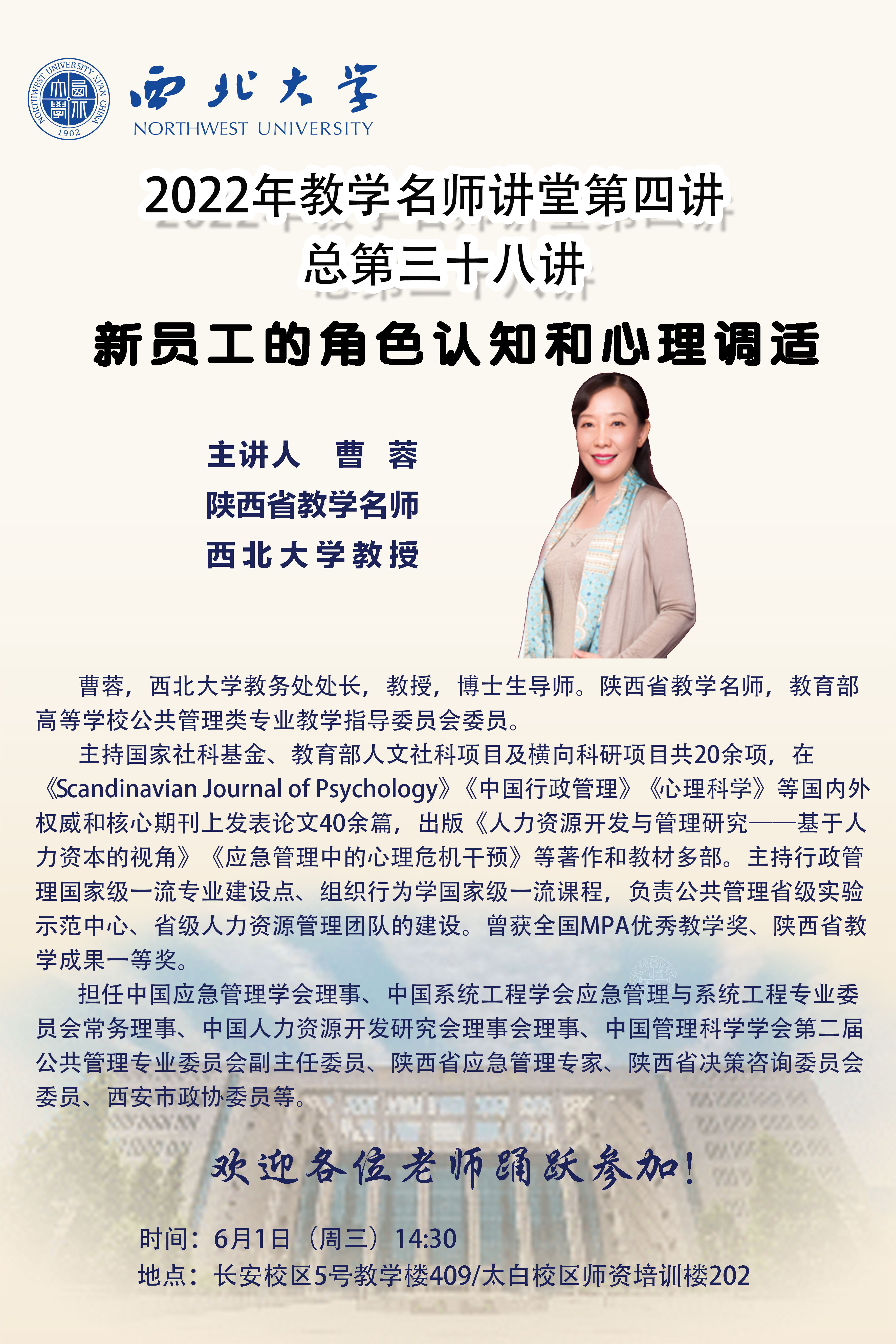云博app官方在线入口2022年教学名师讲堂第四讲——新员工的角色认知和心理调适