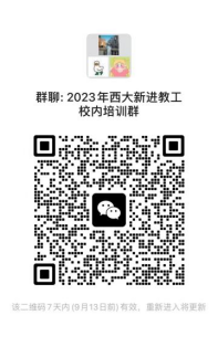 3.请2023年新入职教职工加入“2023年西大新入职教工校内培训群”,并按照“单位名称+姓名”格式修改备注名,以便及时通知2023年岗前培训相关安排。