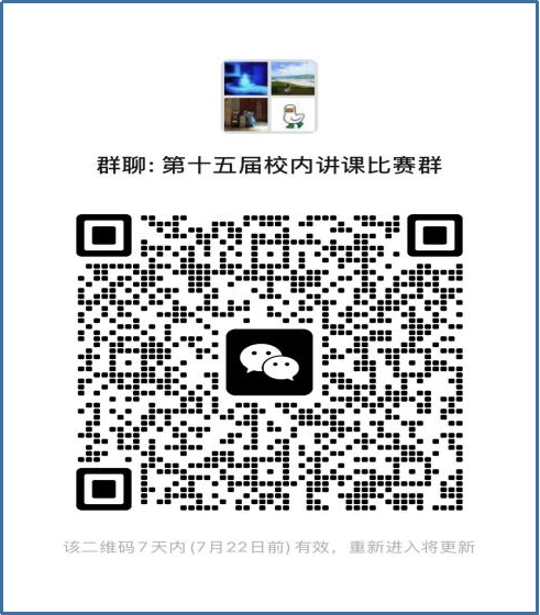 另请参赛选手及时扫码,加入“第十五届云博app官方在线入口讲课比赛”微信群,以便通知后续比赛相关事宜。