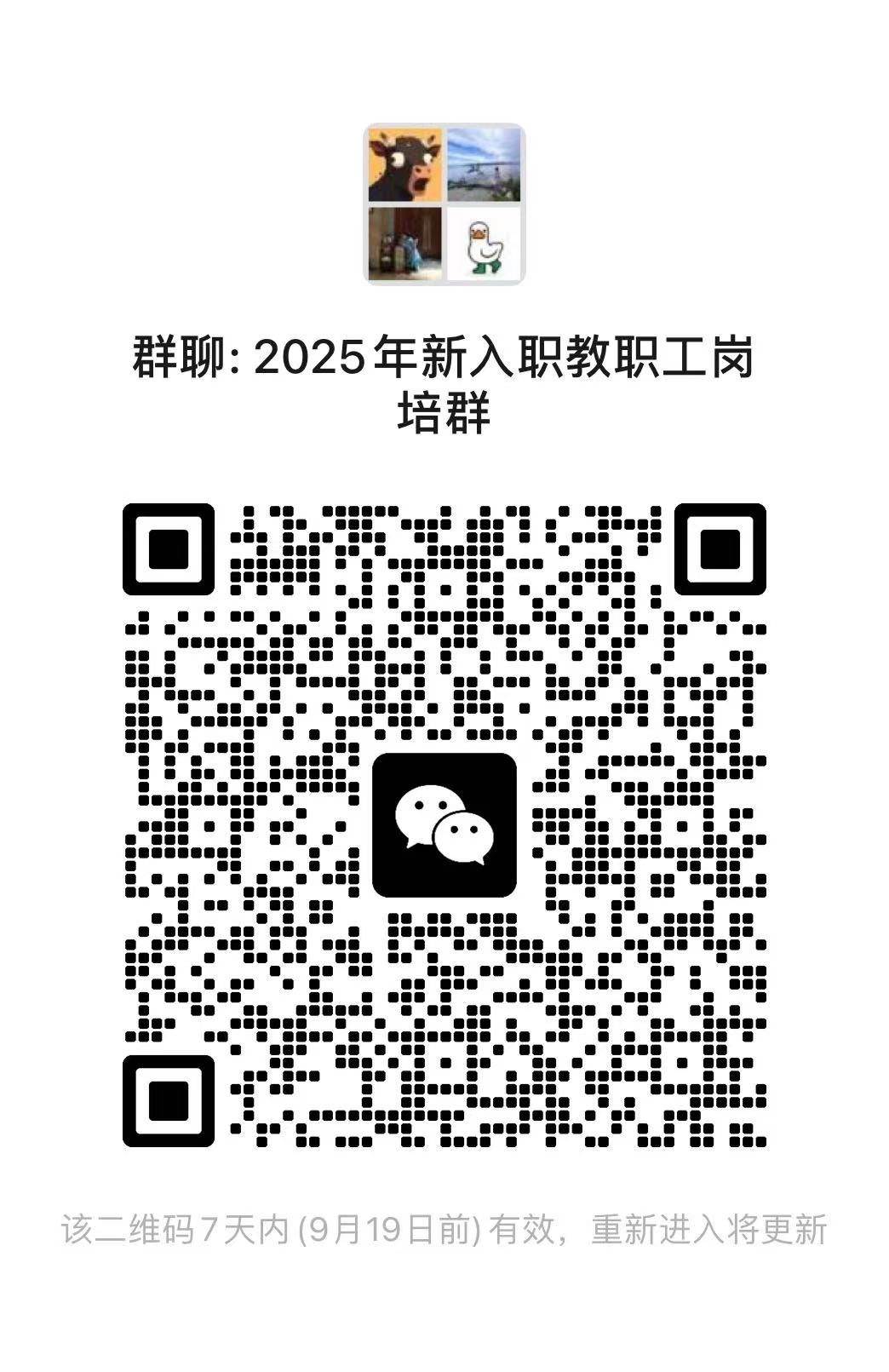 5.请参培教师加入“2025年新入职教职工岗培群”(扫描微信群二维码),按“单位+姓名”格式修改备注名。