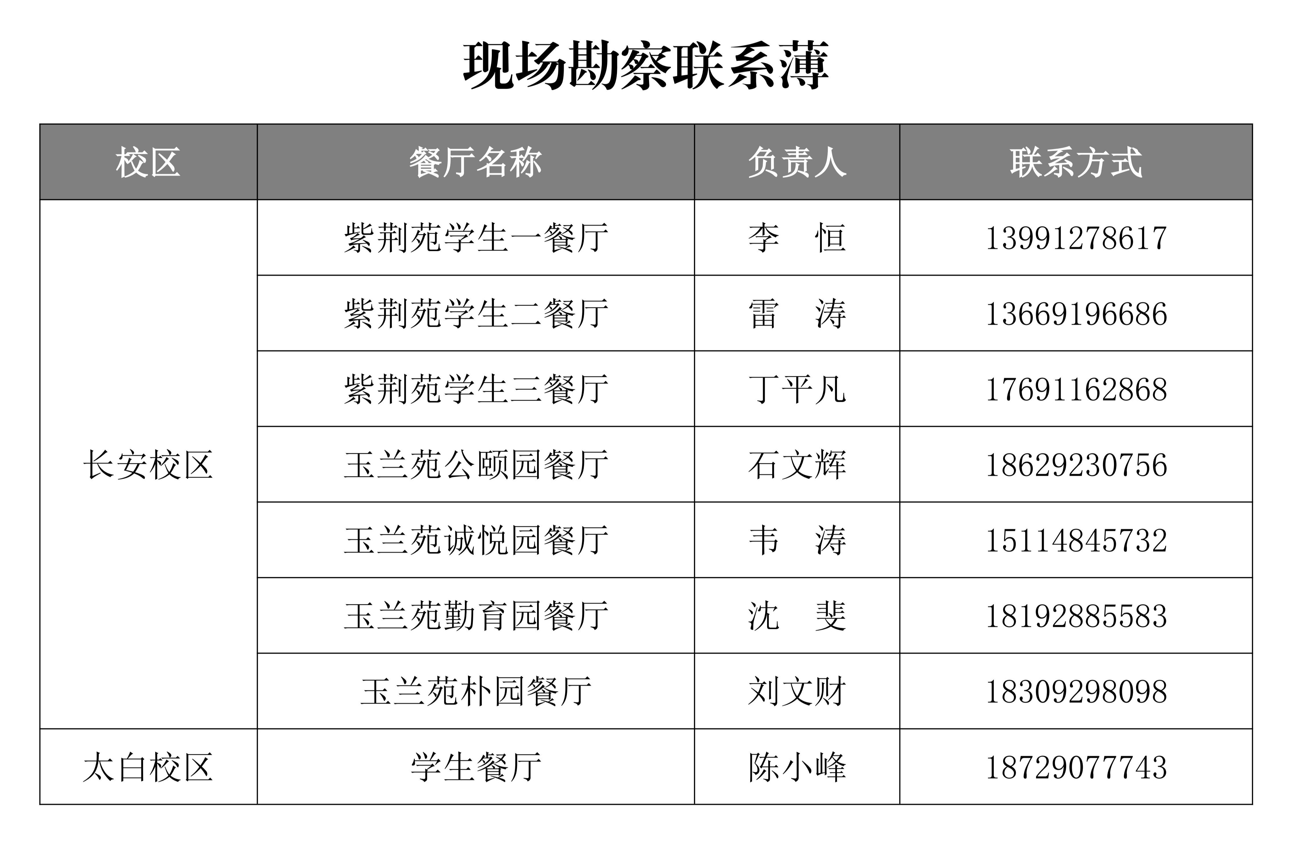 报名者请在报名前联系对餐厅进行现场勘察,联系方式如下: