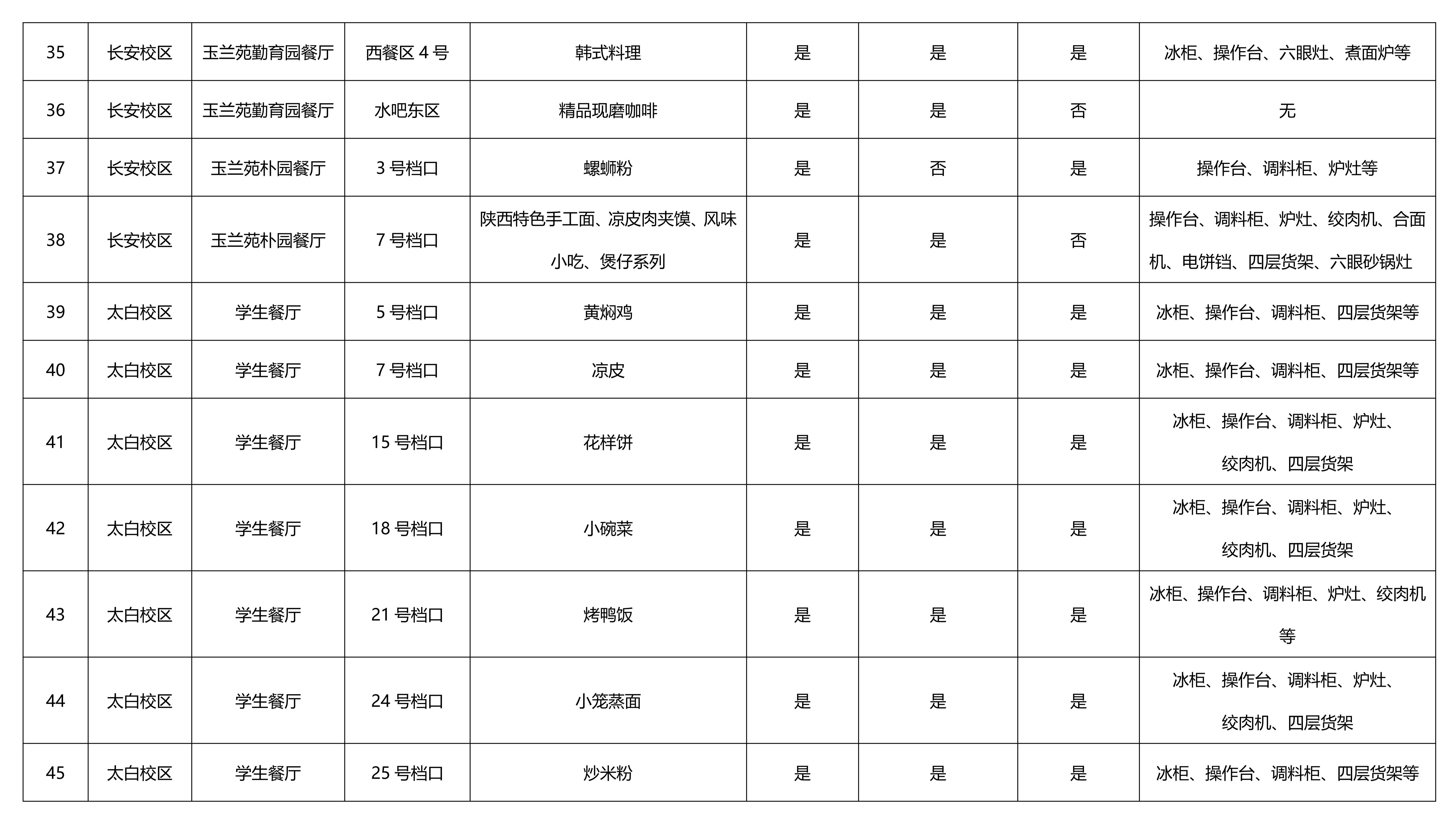 项目简介:本次采用公开遴选方式共引进45个档口,部分提供设备,相关信息详见下表。