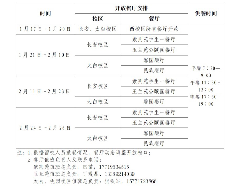 (1)太白校区负责人:张崇锋029-88305206