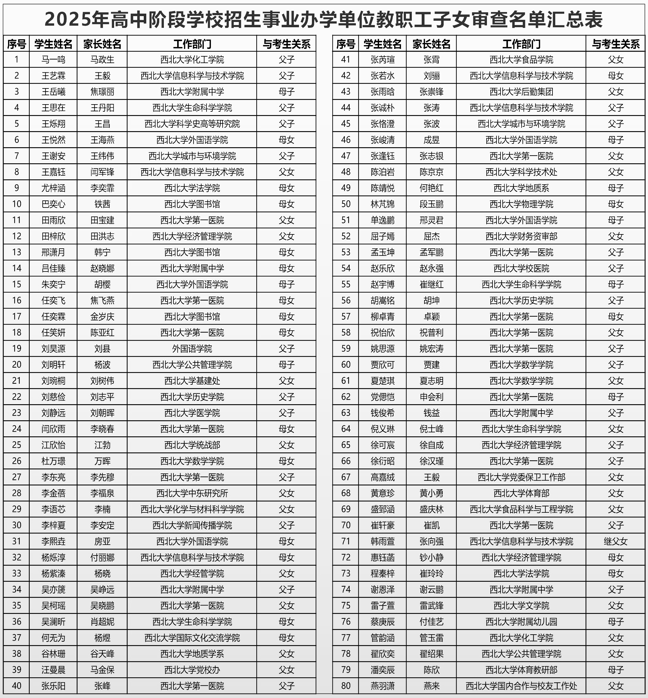 关于2025年高中阶段学校招生云博app官方在线入口正式事业编制的教职工直系初中应届毕业子女审查结果的公示 作者: 编辑:唐毅 时间:2025-05-19 根据市、区教育局通知及要求,云博app官方在线入口于2025年5月13日开展2025年高中阶段学校招生云博app官方在线入口正式事业编制的教职工直系初中应届毕业子女审查工作。经大学人力资源部门、纪检部门审核,通过名单如下(按学生姓氏笔画数排序): 现予以公示,公示时间为5月19日至5月21日。公示期内,如对公示名单有异议,可通过来电形式向云博app官方在线入口反映。 电 话:88363909 云博app官方在线入口附属中学 2025年5月19日