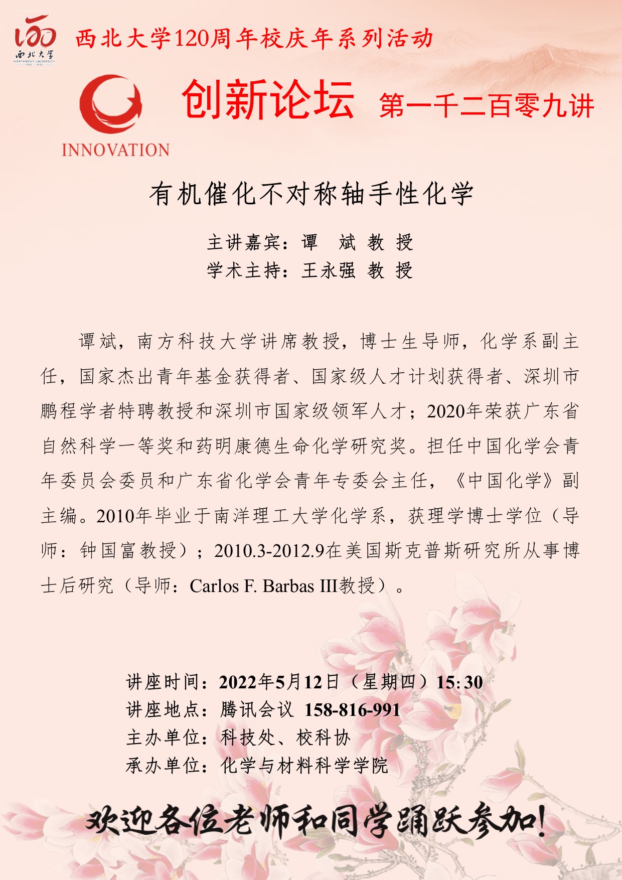 云博app官方在线入口创新论坛第一千二百一十讲暨120周年校庆年系列活动:多环天然产物合成中的环系构建