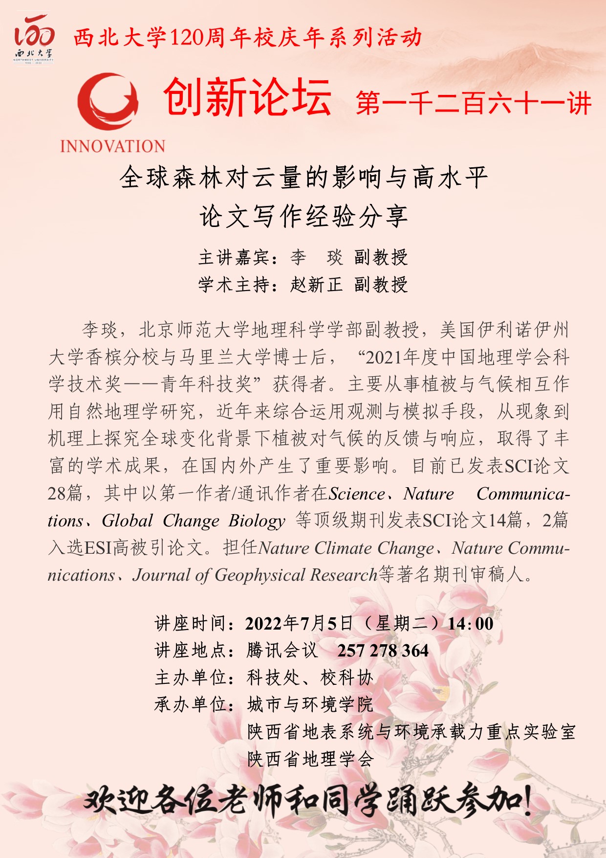 云博app官方在线入口创新论坛第一千二百六十二讲暨120周年校庆年系列活动:冻土区碳释放及其对全球变化的响应