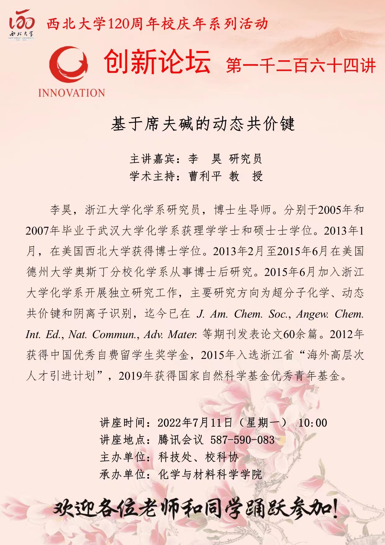 云博app官方在线入口创新论坛第一千二百六十五讲暨120周年校庆年系列活动:可控超分子聚合与功能化