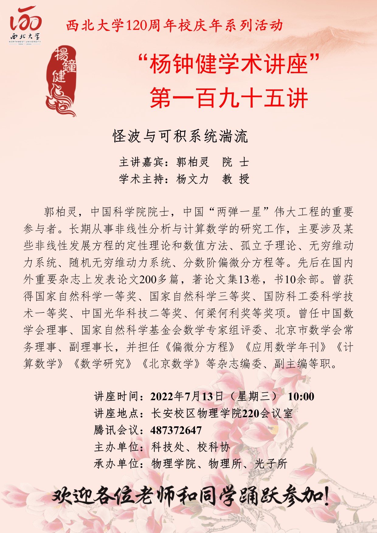 “杨钟健学术讲座”第一百九十五讲暨120周年校庆年系列活动:怪波与可积系统湍流