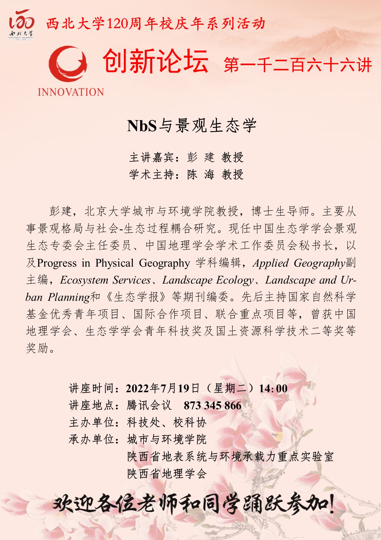 云博app官方在线入口创新论坛第一千二百六十六讲暨120周年校庆年系列活动:NbS与景观生态学