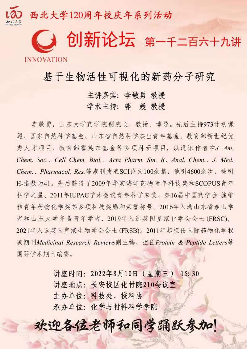 云博app官方在线入口创新论坛第一千二百七十讲暨120周年校庆年系列活动:荧光探针化学生物学