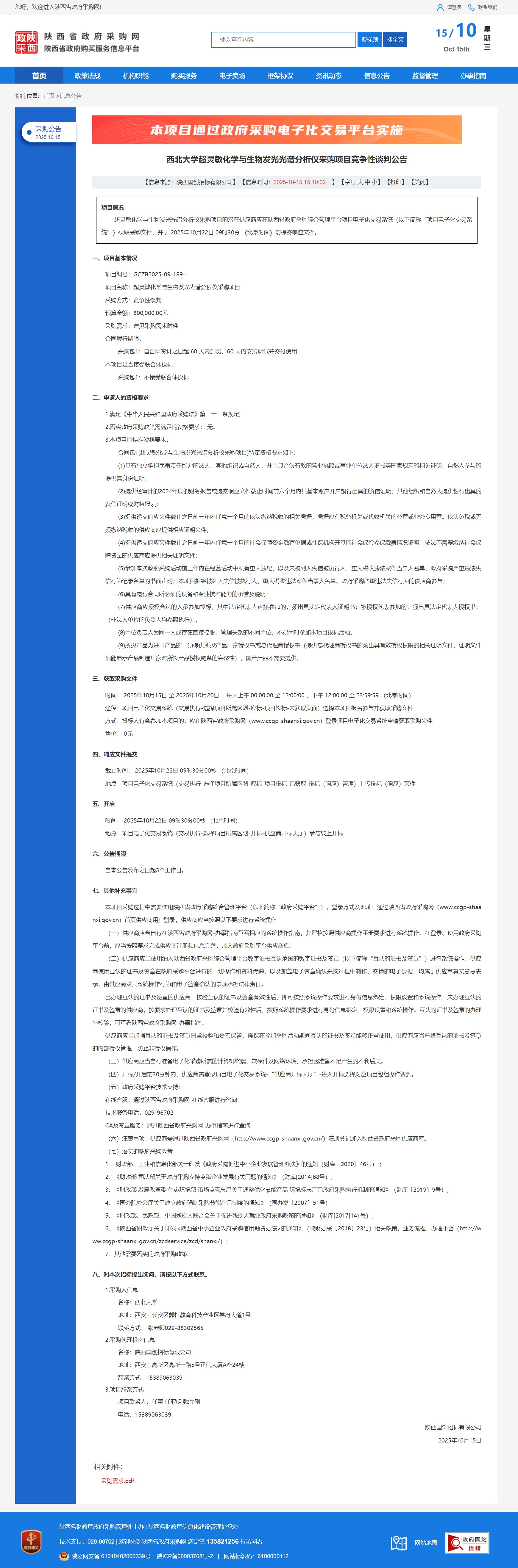 云博app官方在线入口超灵敏化学与生物发光光谱分析仪采购项目竞争性谈判公告